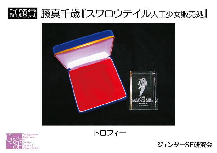2001年度から始まったSense of Gender賞(センス・オブ・ジェンダー賞、以下SOG賞)、今年で第10回目を迎えました。この賞は、アメリカのジェイムズ・ティプトリー・ジュニア文学賞と同様に、前年度の1月1日から12月31日まで1年間に刊行されたSF作品の中で、性差についての考えを深めていると考えられる作品を、「あなたのSF的ジェンダー考察はすばらしい」と褒めたたえるものです。